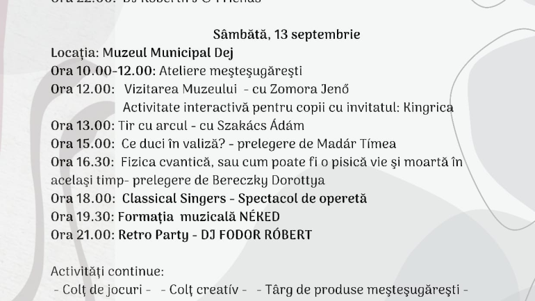 Manifestarea va avea loc la sediul Muzeului Municipal Dej, str. 1 Mai nr. 3 și va include două componente. În…